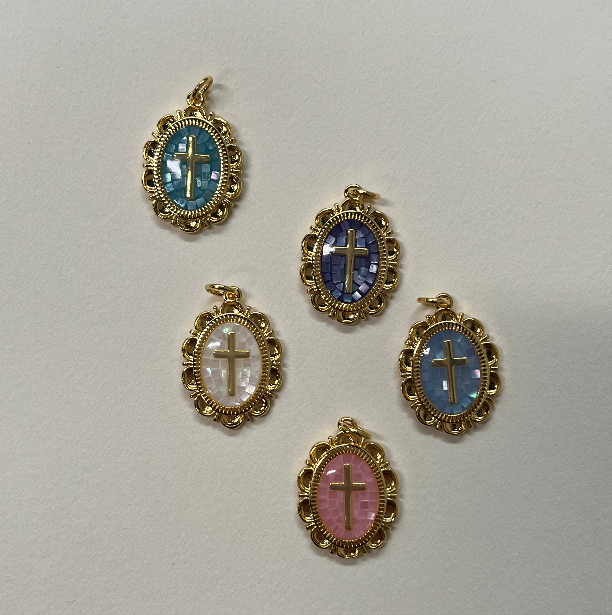 MEDAL CROSS with shell mosaic GP 18 kt
